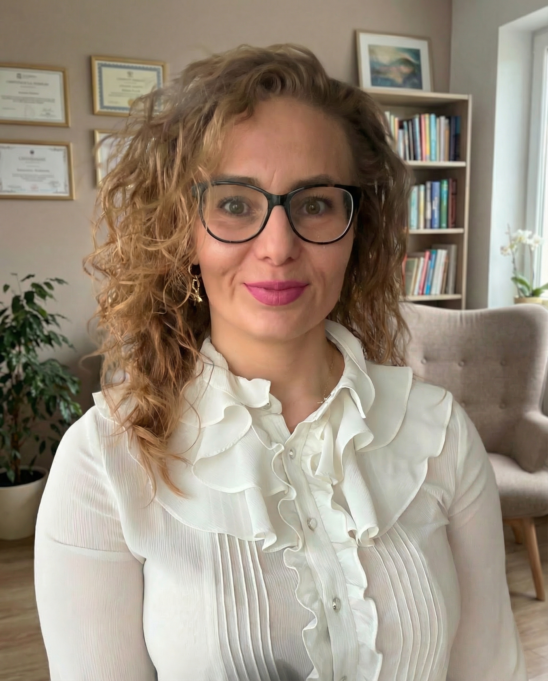 Sunt Cristina Aliman, psihoterapeut cognitiv-comportamental, acreditat de Colegiul Psihologilor din România.